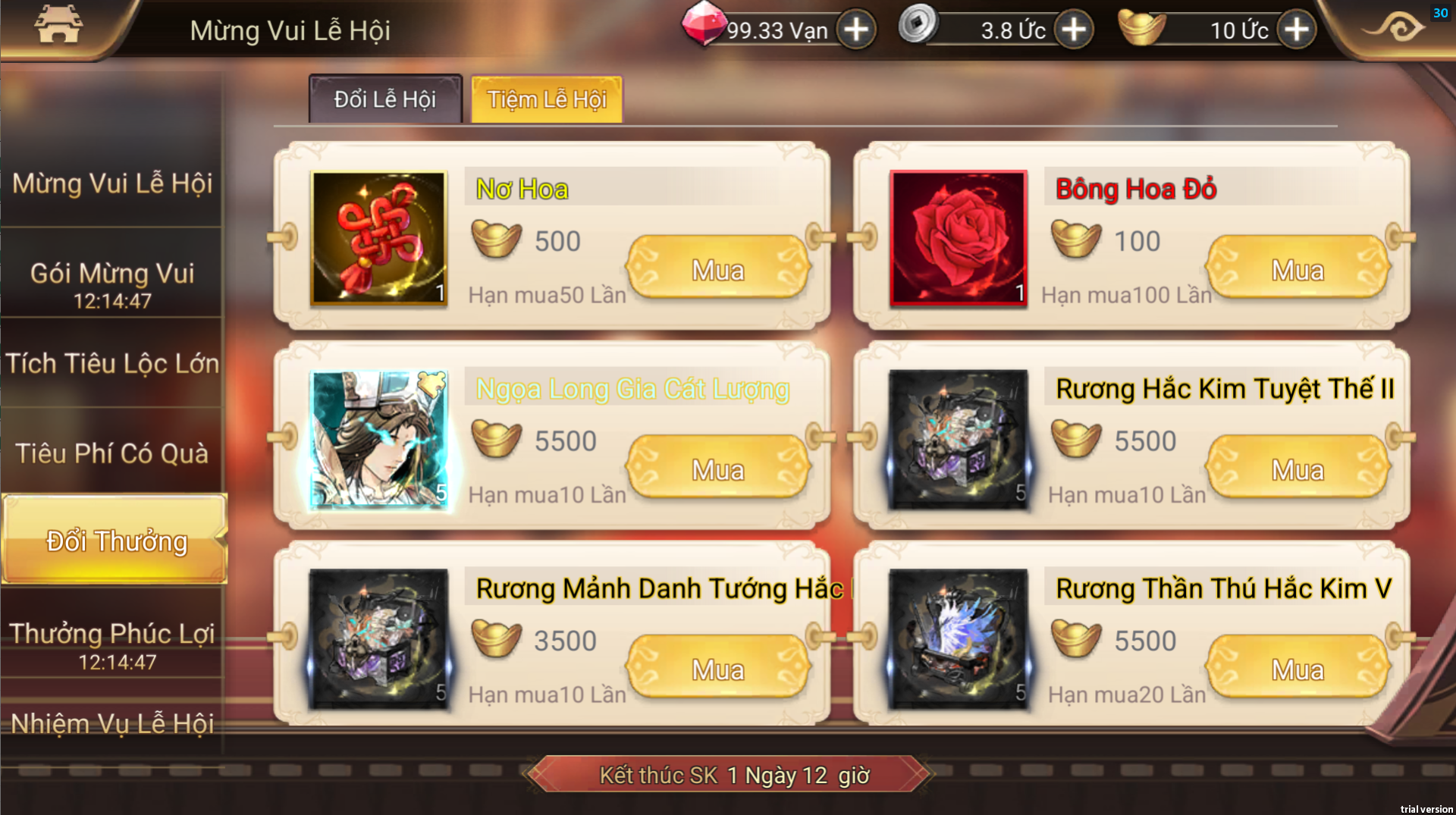 - Bộ 03 giftcode sự kiện đặc biệt;