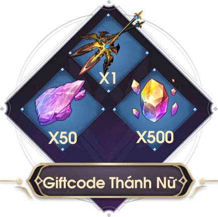 - 👑 Giftcode Thánh Nữ: Thần Binh Song Kích Bá Vương x1, Đá Tăng Cấp Thần Binh x50, Tinh Phách Thần Binh x500