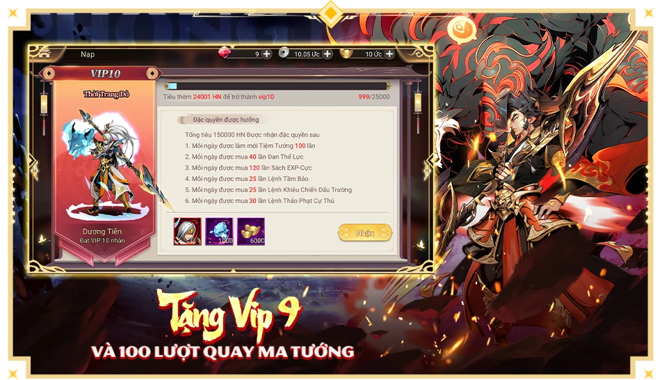 - 💖 Giftcode Mị Yêu: KNB x200, Lệnh thần tướng x3, Đan Phi Thăng x50
