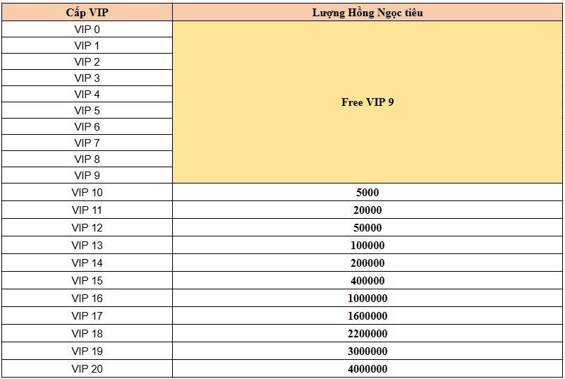 Chủ Soái có thể tăng điểm VIP bằng cách Tiêu Hồng Ngọc (1 Hồng Ngọc = 1 điểm VIP).
