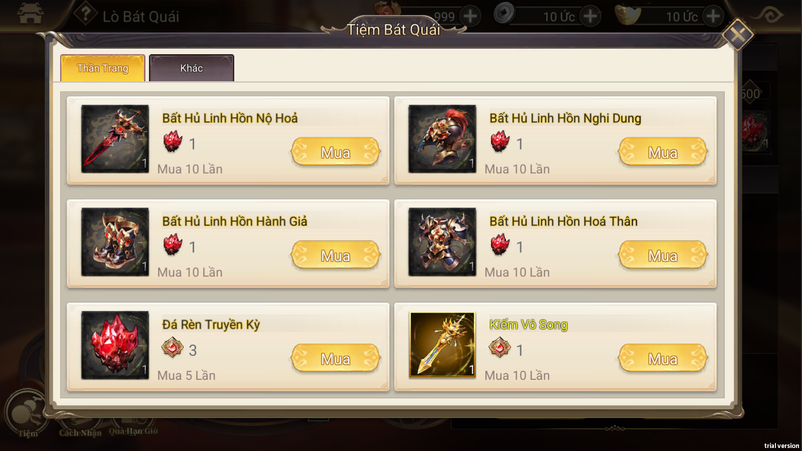 Đá Rèn-Vàng: Đổi thưởng cực phẩm trong cửa hàng <Trang bị Vô Song>