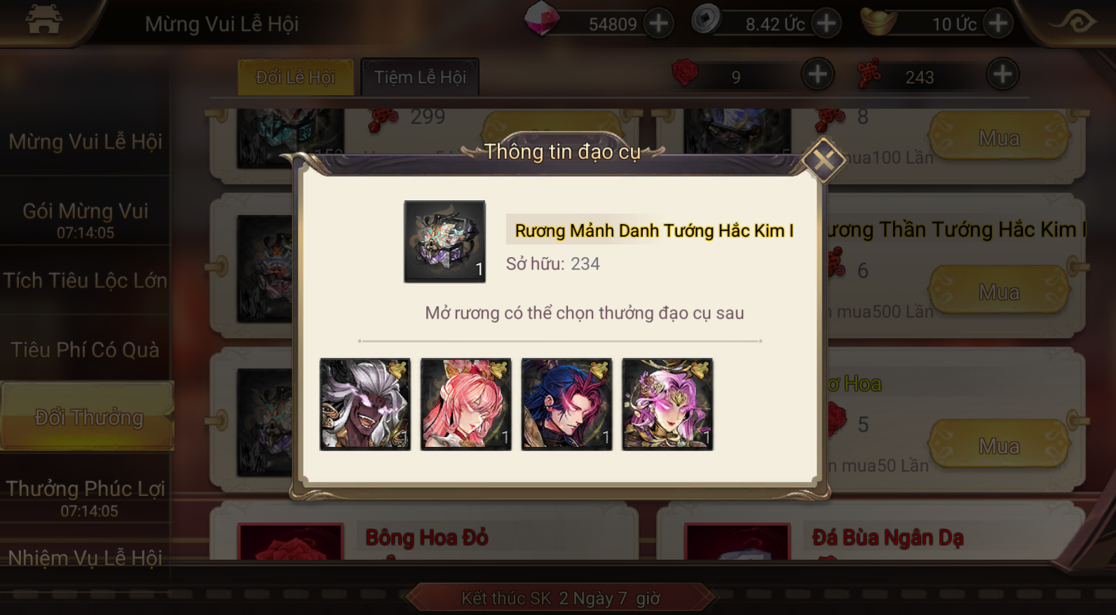 Để nhận được 4 danh tướng Hắc Kim mới, các Chủ Soái hãy tham gia sự kiện Mừng Vui Lễ Hội trong game và nhận thưởng nhé!