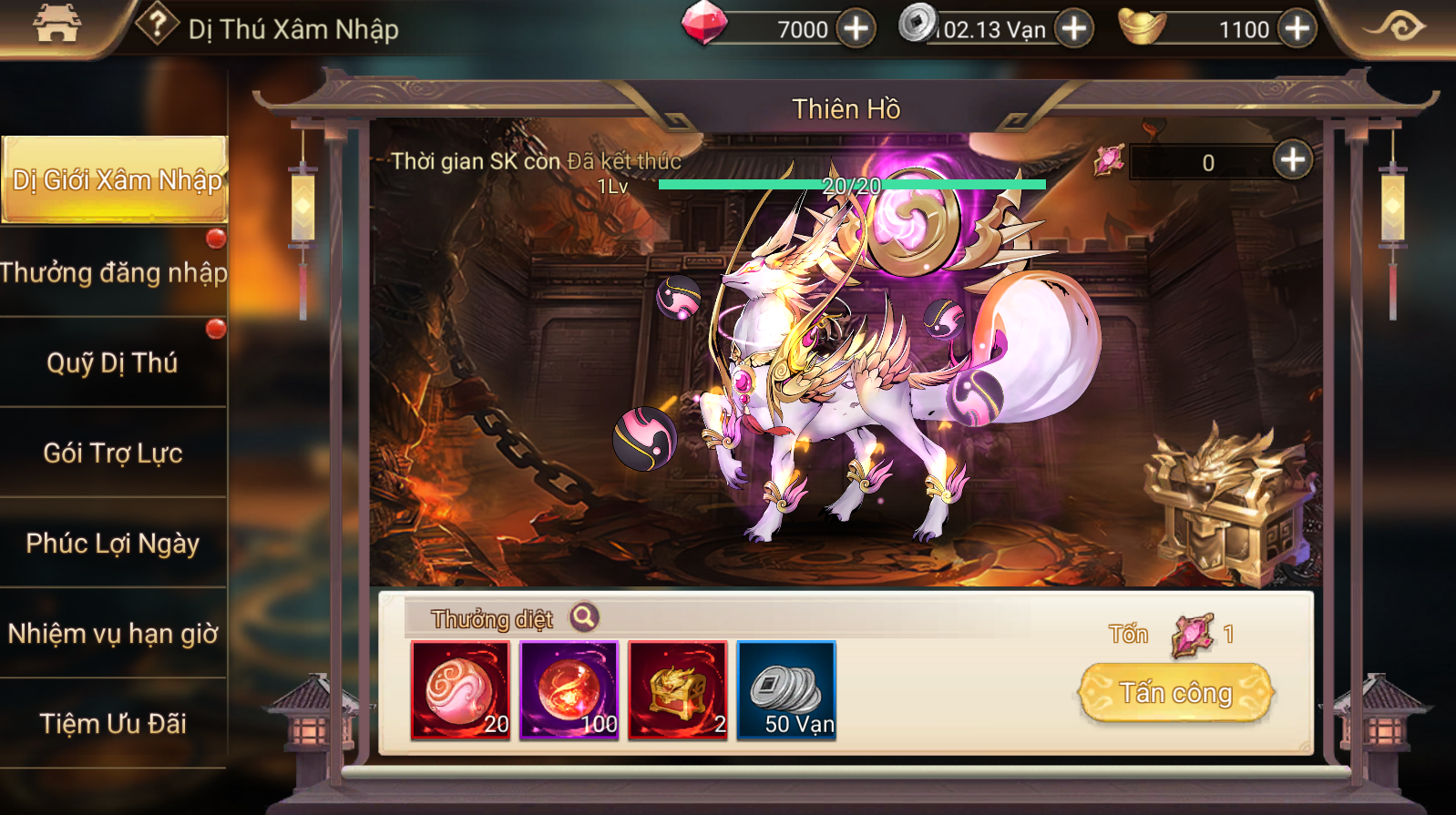 - Nội đan thần thú rơi ra khi tấn công boss có thể dùng để đổi vật phẩm tại tiệm ưu đãi;