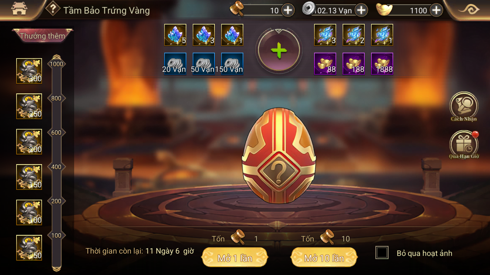 - Có thể kiếm Búa Nhỏ thông qua các sự kiện trên Fanpage, Group, nhiệm vụ Ingame, Nạp.