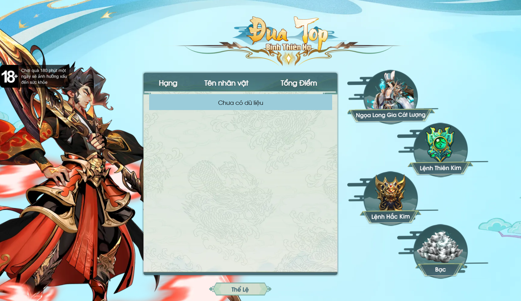 Trong thời gian sự kiện, tiêu hao vật phẩm Quạt Lông trong minigame Bình Thiên Hạ Cùng Gia Cát Lượng để đạt Điểm thứ hạng cao trên BXH;